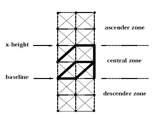 Characters were formed on the following grid:
